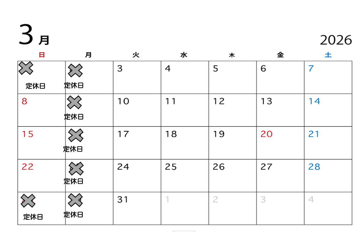 ※空欄の日は終日ご予約可能です。